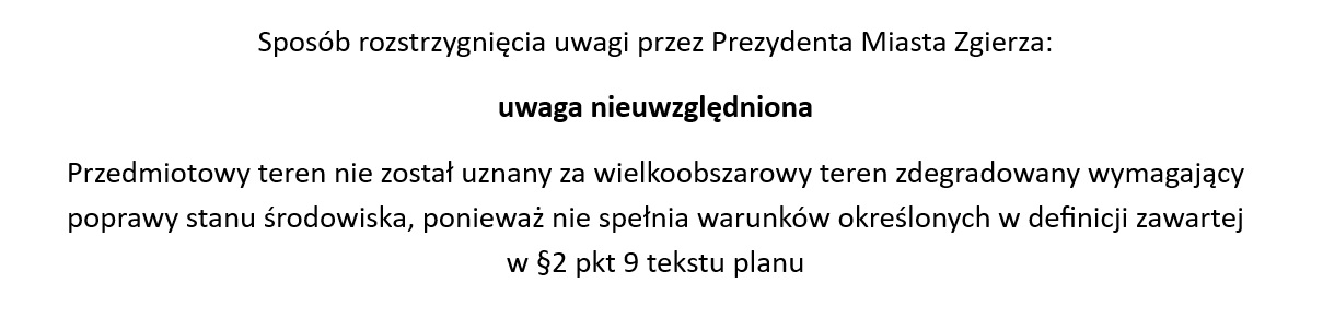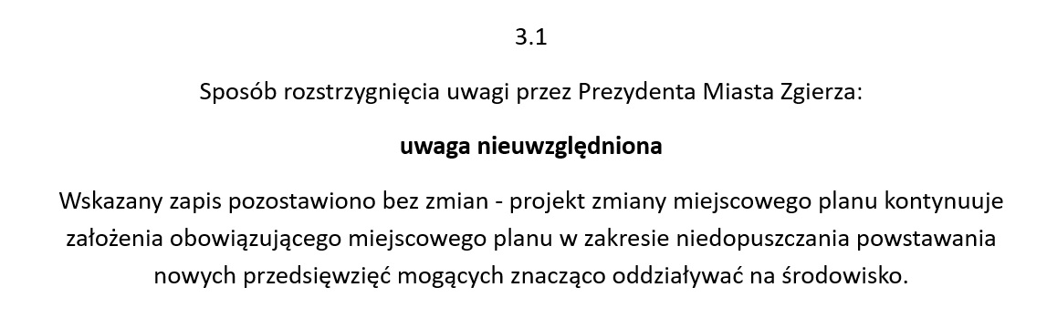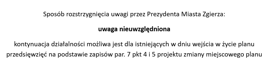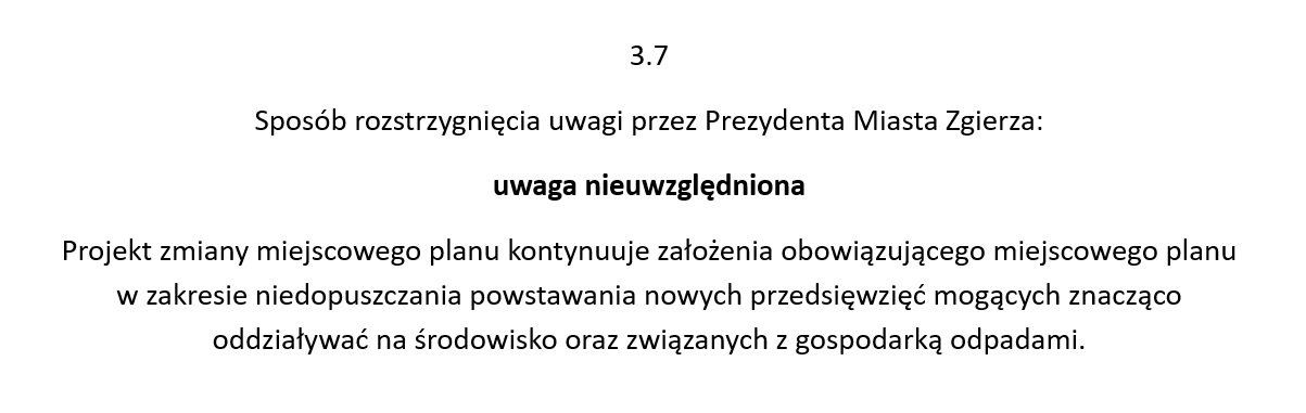Uwaga 3.7 - Umożliwienie realizacji przedsięwzięć mogących zawsze znacząco oddziaływać na środowisko i mogących potencjalnie znacząco oddziaływać na środowisko w celu umożliwienia wznowienia działalności Fabryki żelatyny.