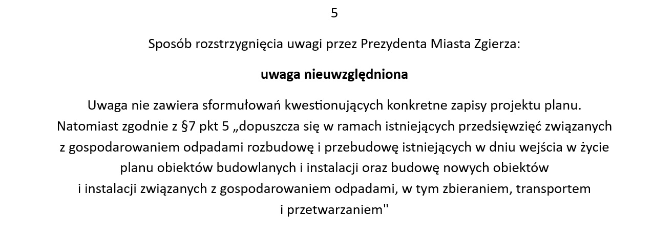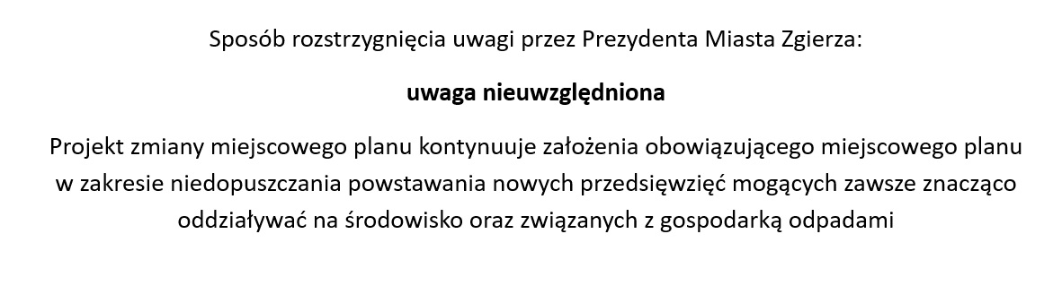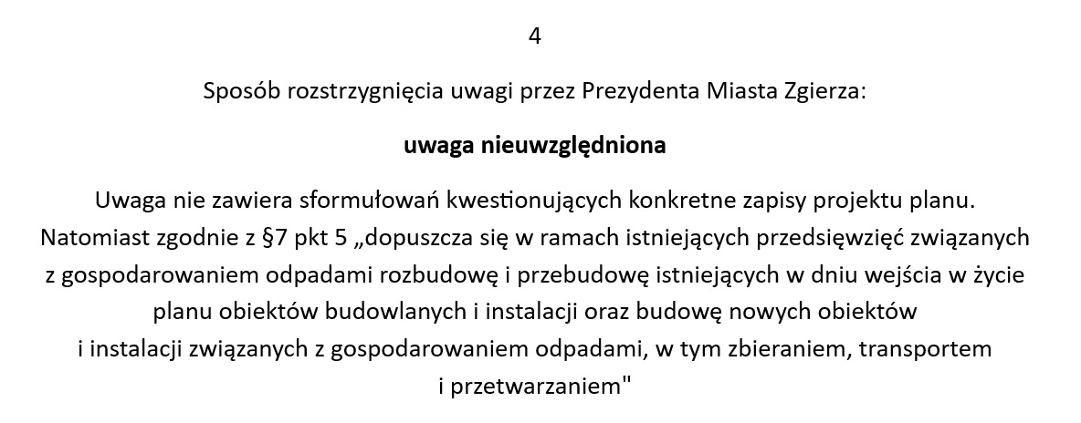 Uwaga 2.1 - W celu umożliwienia na działce nr 371, obręb 0121, na której historycznie prowadzona była działalność związana z gospodarowaniem odpadami i ponownego prowadzenia takiej działalności (z wyłączeniem składowisk odpadów) wnioskuje się o: Na terenie 4PP-PS dopuszczenie realizacji przedsięwzięć mogących zawsze znacząco oddziaływać na środowisko, w tym przedsięwzięć w zakresie zbierania i przetwarzania odpadów, z wyłączeniem składowisk odpadów i uzupełnienie oznaczenia terenu o symbol „O" lub „Ol".
