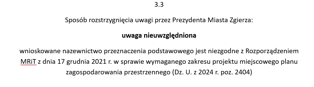 Uwaga 3.3 - Dopisanie w §29 pkt 2) projektu zmiany planu treści „ oraz obiekty i urządzenie towarzyszące" co jest treścią § 24 ust. 2 pkt 2).