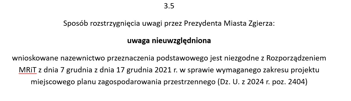 Uwaga 3.5 - Dopisanie w §31 pkt 2 projektu zmiany planu treści „oraz obiekty i urządzenia towarzyszące", co jest treścią §20 ust.2 pkt 2) lit. b) obecnego planu z symbolem 7P