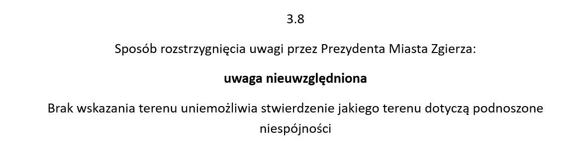 Uwaga 3.8 - Uzupełnienie postulowanego terenu projektu zmiany planu w jego załączniku graficznym/rysunku, ponieważ nie jest zgodne z oznaczeniem terenu wskazanym jego treścią i jego częścią graficzną